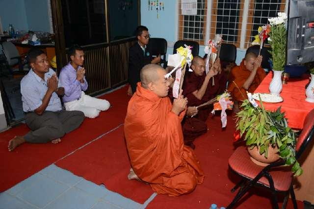 此次開(kāi)倉(cāng)儀式入鄉(xiāng)隨俗,采用緬式慶典形式--宋干(音同)舉行。緬甸是個(gè)全民信佛的國(guó)家,佛教氛圍濃厚,處處可見(jiàn)佛塔,人民樸實(shí)友善。此次開(kāi)倉(cāng)更是請(qǐng)來(lái)了當(dāng)?shù)刂畬W(xué)院馬哈伽納揚(yáng)的高僧祈福做法。馬哈伽納揚(yáng)是緬甸最大的僧學(xué)院,在這里進(jìn)修的僧侶數(shù)量過(guò)千,也被稱(chēng)作“千人僧院”。