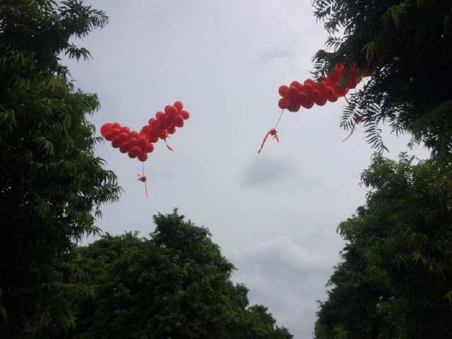 彩頭被氣球帶上天空,寓意一飛沖天