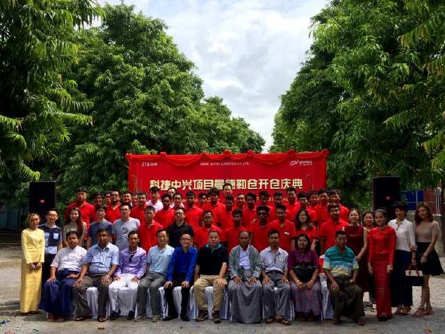 科捷物流常務(wù)副總裁陳滔滔先生,中興交付部亞太物流倉(cāng)儲(chǔ)總監(jiān)黃忠湘先生,中興全球物流部海外關(guān)務(wù)總監(jiān)喻捷先生,科捷物流在緬合作伙伴Great Alpha總裁 Aung Kyaw Myint,緬甸相關(guān)政府官員共同參加了此次開(kāi)倉(cāng)盛典。